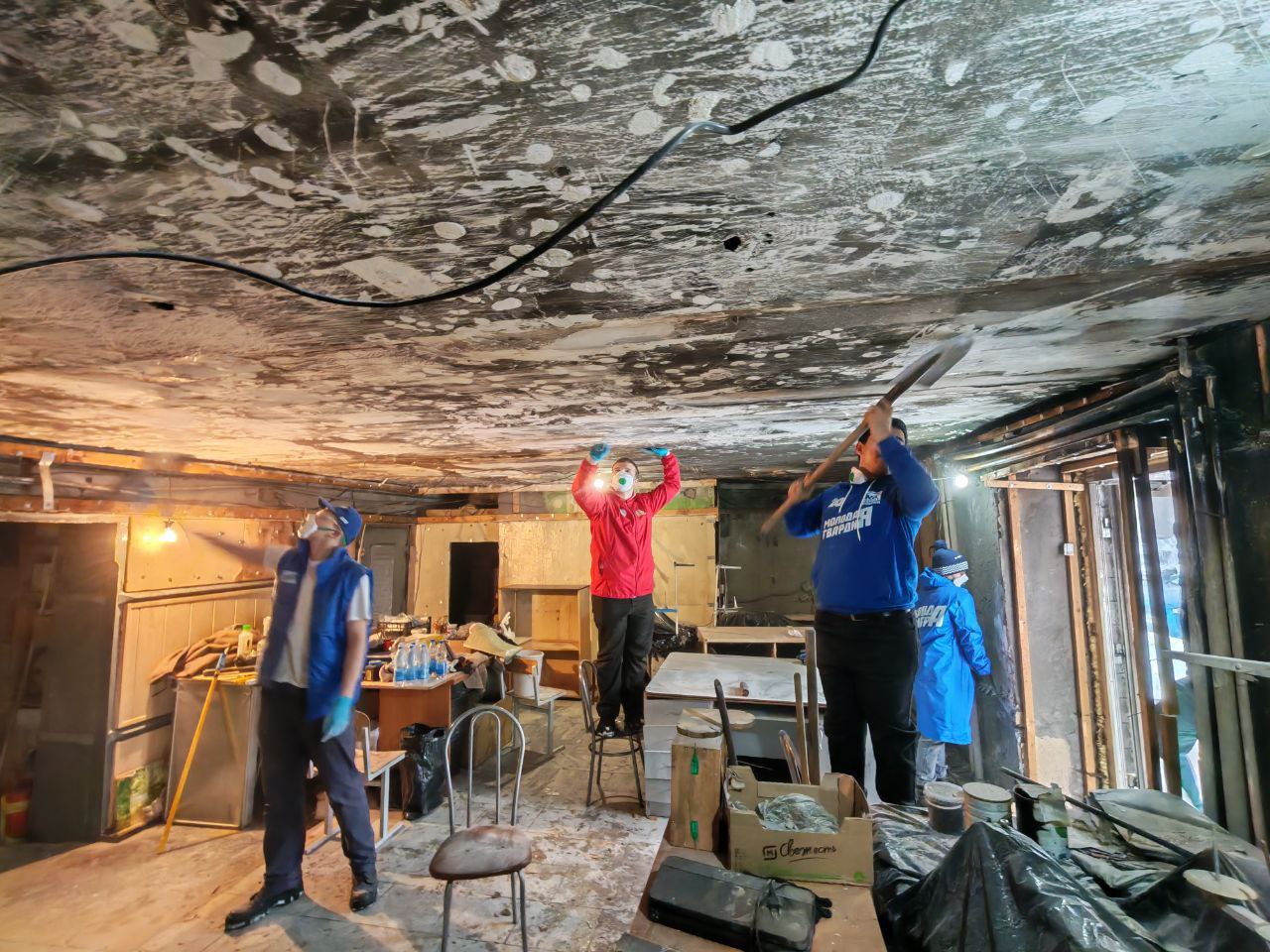 Волонтёры уже начали уборку: чистят поверхности, демонтируют поврежденную мебель и убирают снег с кровли. Для восстановления работы пункта требуется ремонт. Волонтёры и студенты будут белить и красить стены, но нужна финансовая поддержка для закупки материалов и мебели.