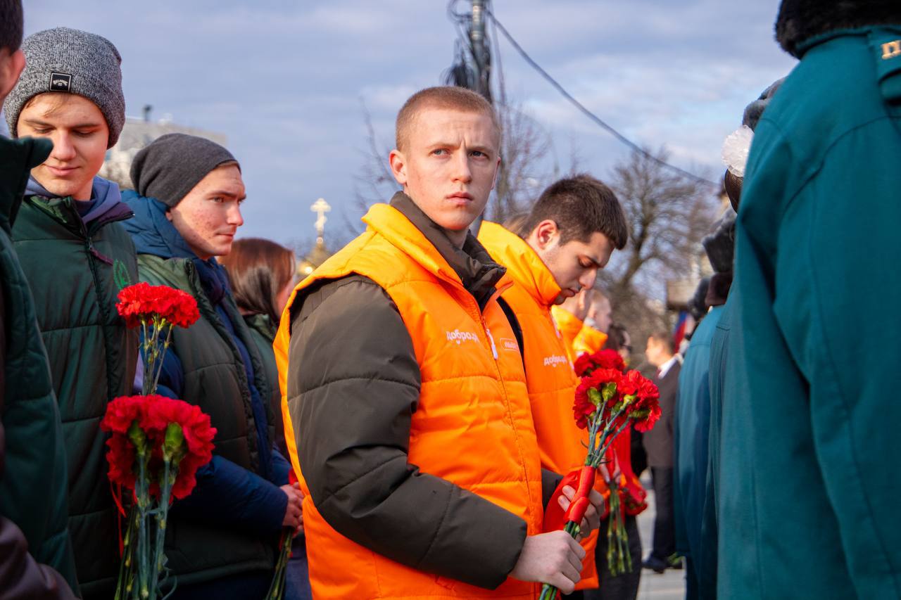 - Луганск: добровольцы #МЫВМЕСТЕ, сотрудники Дома молодёжи и Российского союза молодёжи возложили цветы у мемориального комплекса «Острая могила», почтили память павших защитников.